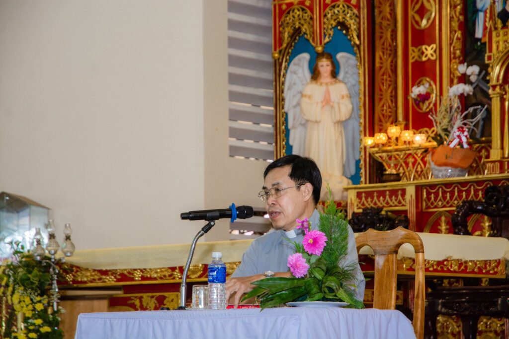 Cha Giuse phó Linh giám chuyên trách Junior dõng dạc tuyên bố khai trại.