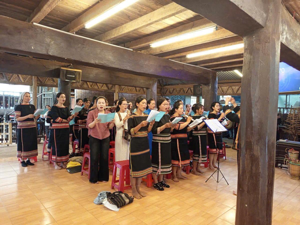Chương trình bắt đầu lúc 8:00 với việc các hội viên Legio Mariæ lần hạt Mân Côi bằng hai ngôn ngữ Jrai và tiếng Việt.